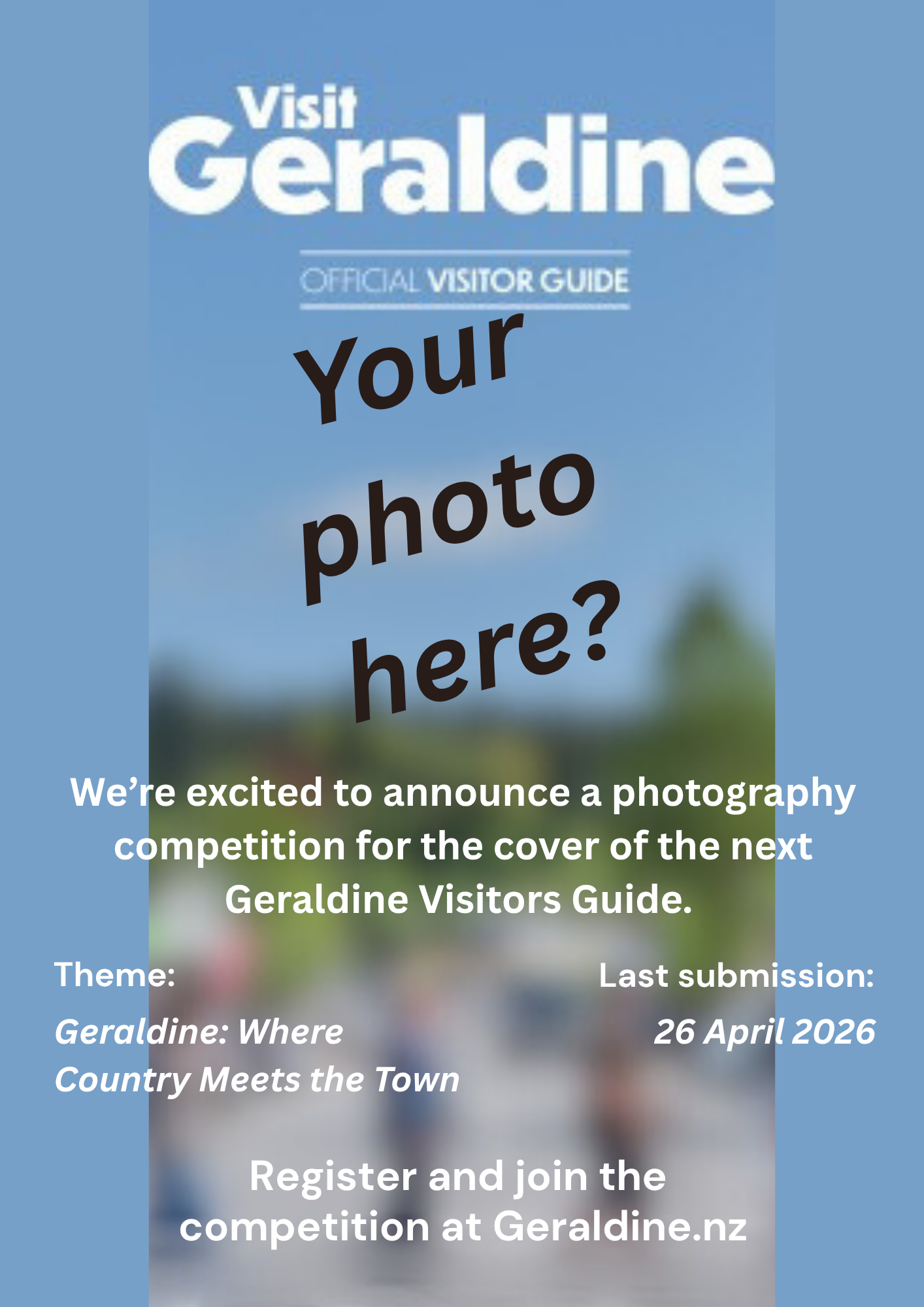 This is the 2026 Visitor Guide Photo Competition. We need an image that captures the soul of Geraldine—whether it’s our landscapes, our streets, or our hidden gems.